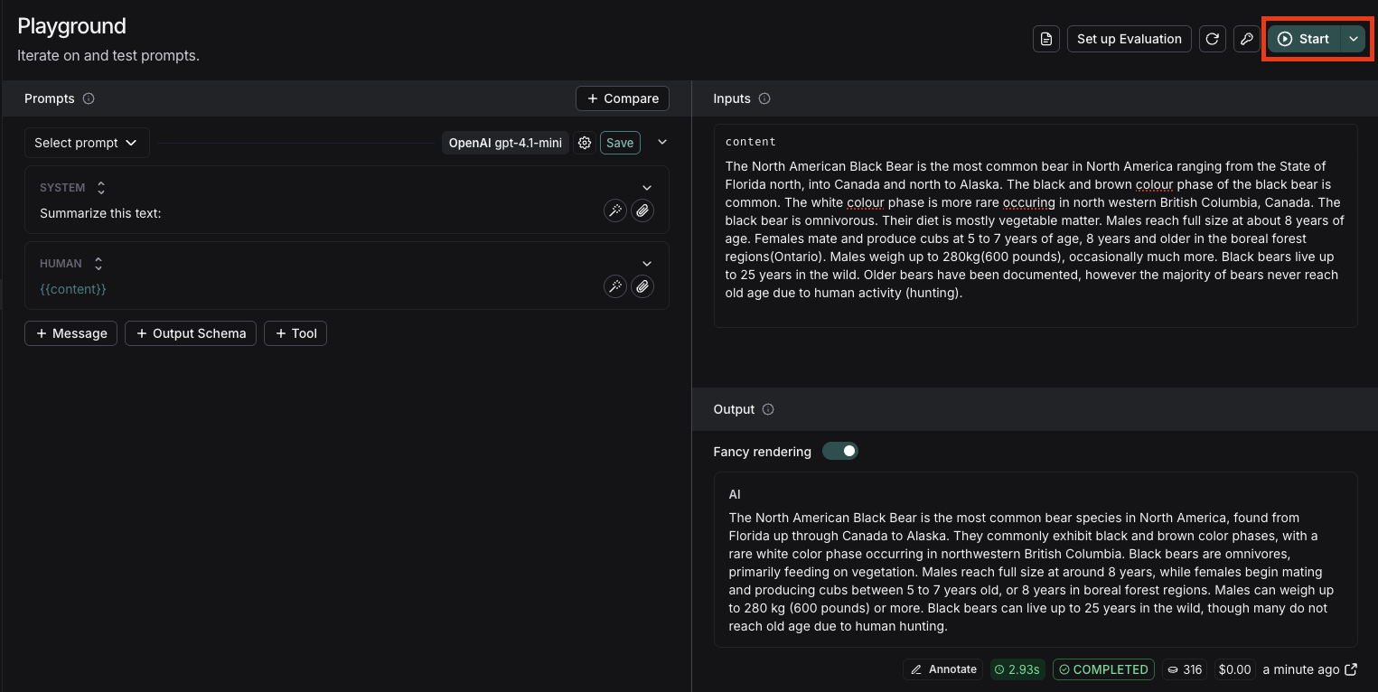Click “Start” to run the prompt.